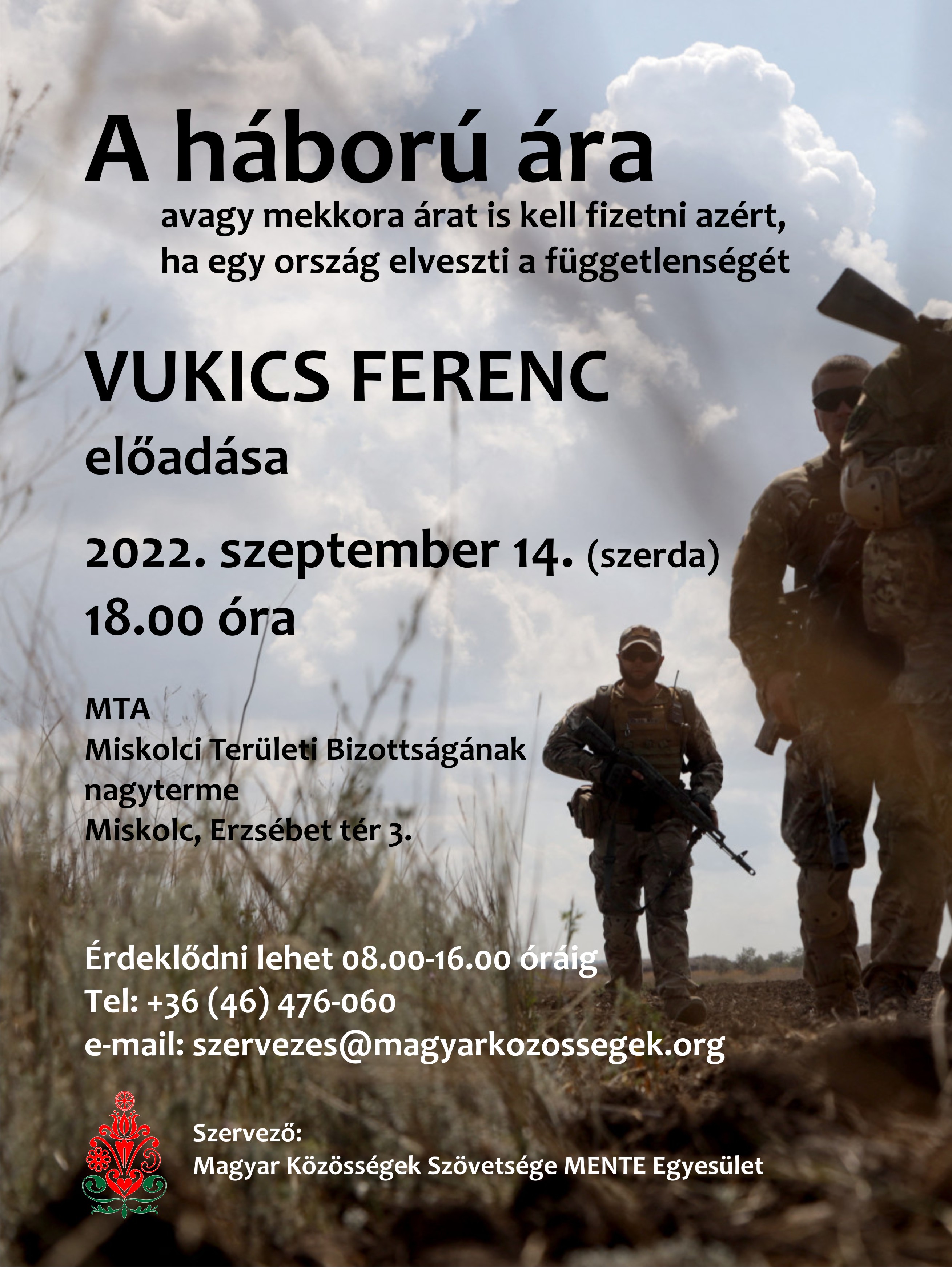 Érdeklődni: 8-16 óra között a +36 46 476-060 -as telefonszámon vagy a szervezes@magyarkozossegek.org email címen.