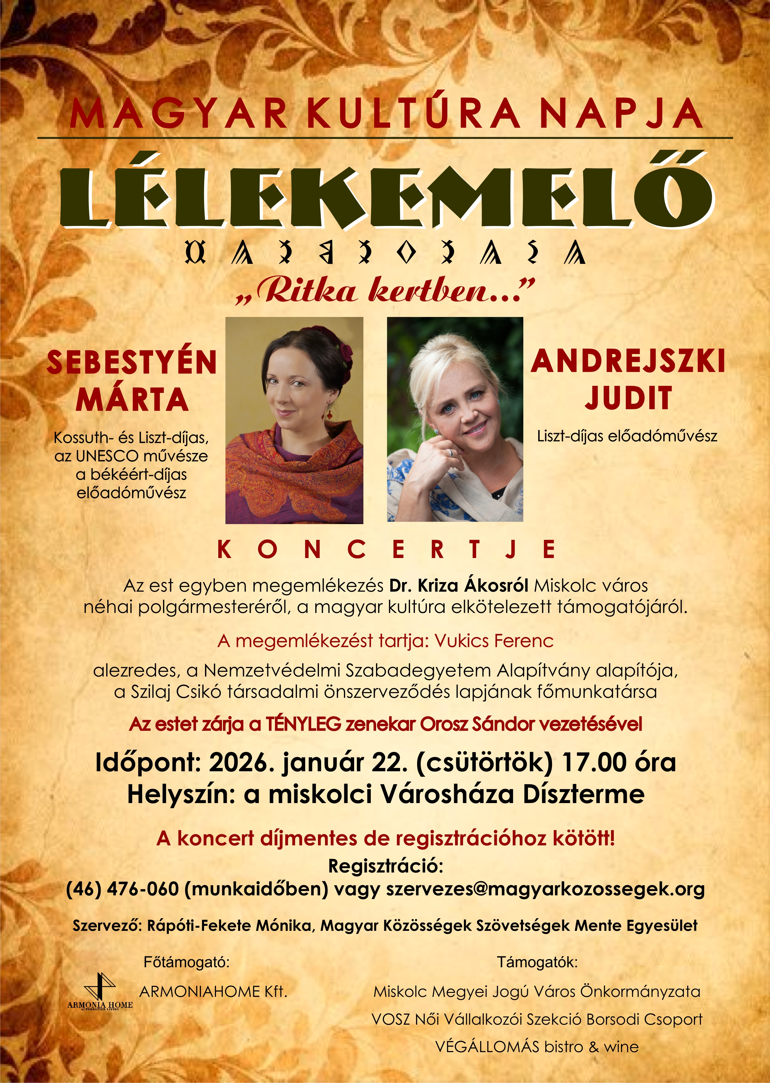 Az esemény egyben megemlékezés Dr. Kriza Ákosról, Miskolc város néhai polgármesteréről, a magyar kultúra elkötelezett támogatójáról.